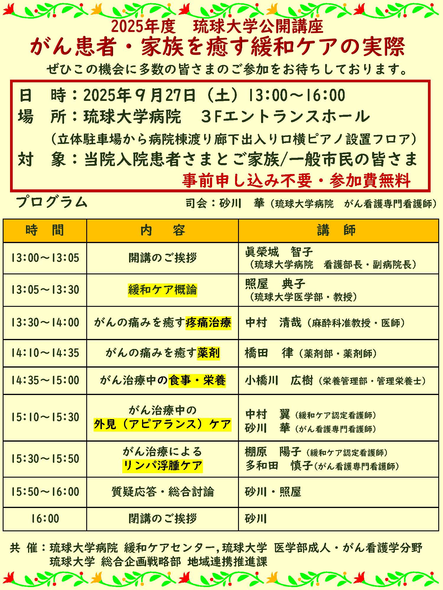 琉球大学公開講座「がん患者・家族を癒す緩和ケアの実際」