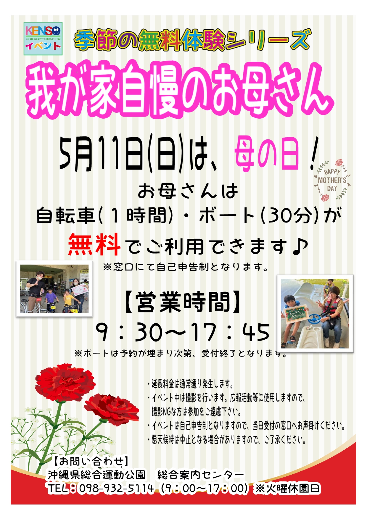 県総 季節の無料体験シリーズ~我が家自慢のお母さん~(自転車・ボート)
