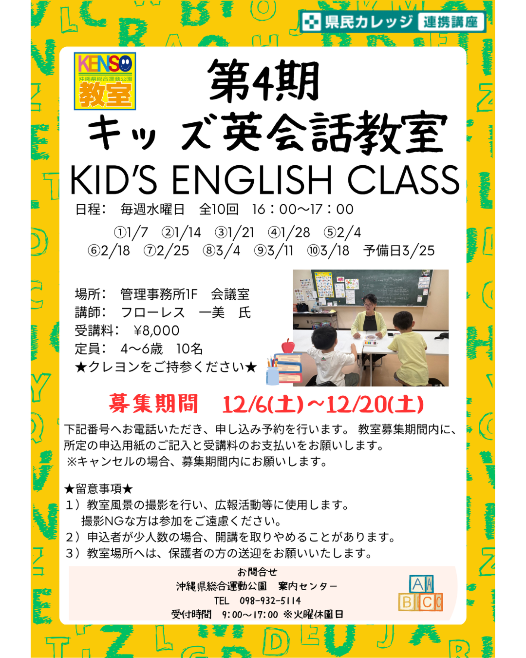 募集期間内に、総合案内センター窓口で申込用紙の記入とお支払いをお願いします。