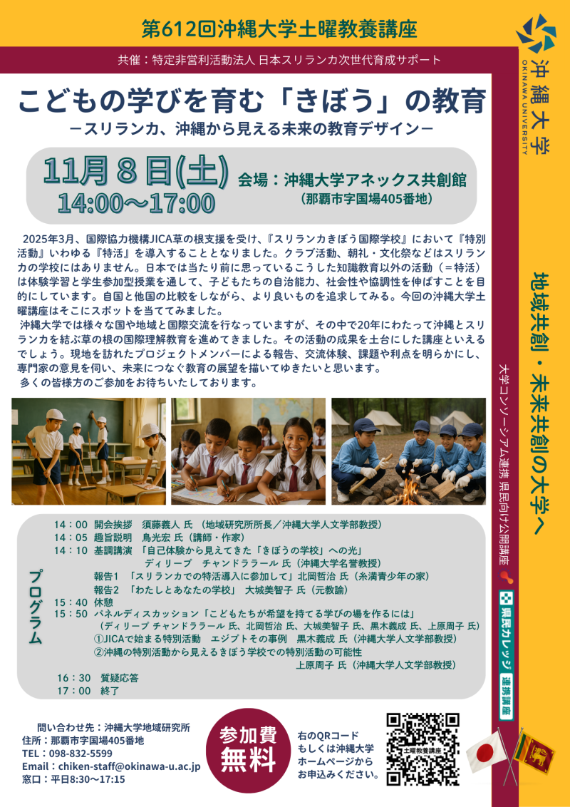 第612回沖縄大学土曜教養講座「こどもの学びを育む「きぼう」の教育─スリランカ、沖縄から見える未来の教育デザイン─」
