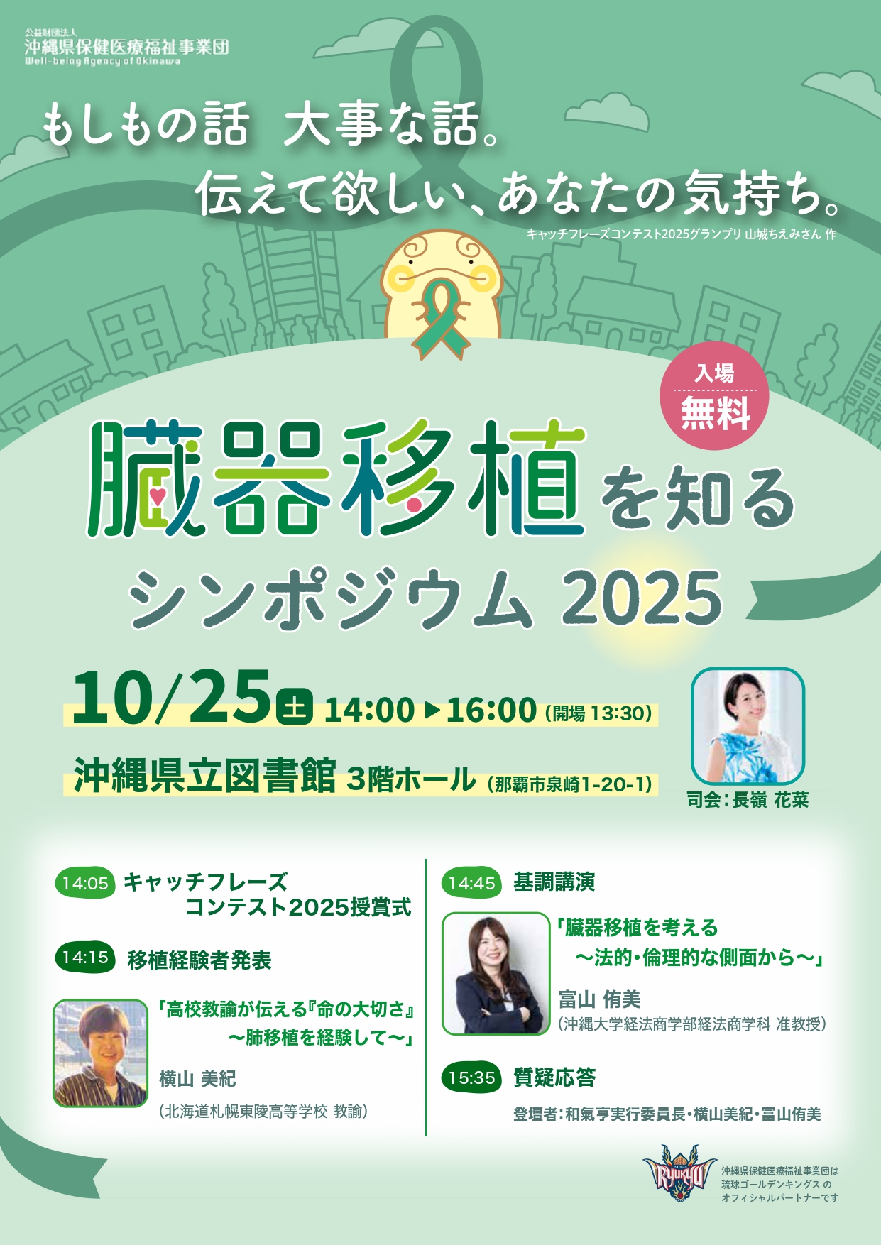 臓器移植を知るシンポジウム2025「もしもの話 大事な話。伝えて欲しい、あなたの気持ち。」 イベントプログラム