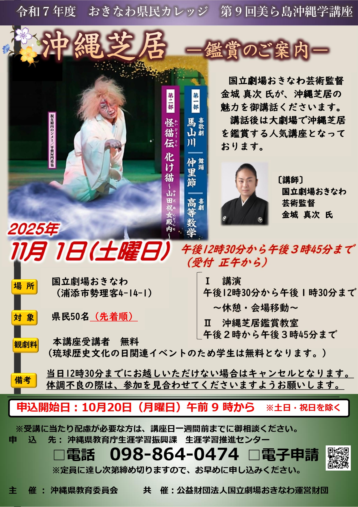 令和7年度 おきなわ県民カレッジ【美ら島沖縄学講座】第9回 沖縄芝居 ー鑑賞のご案内ー